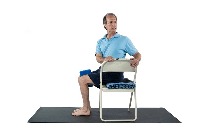 - Keep your chest lifted and shoulders relaxed. Let the twist come from your spine, not your neck.